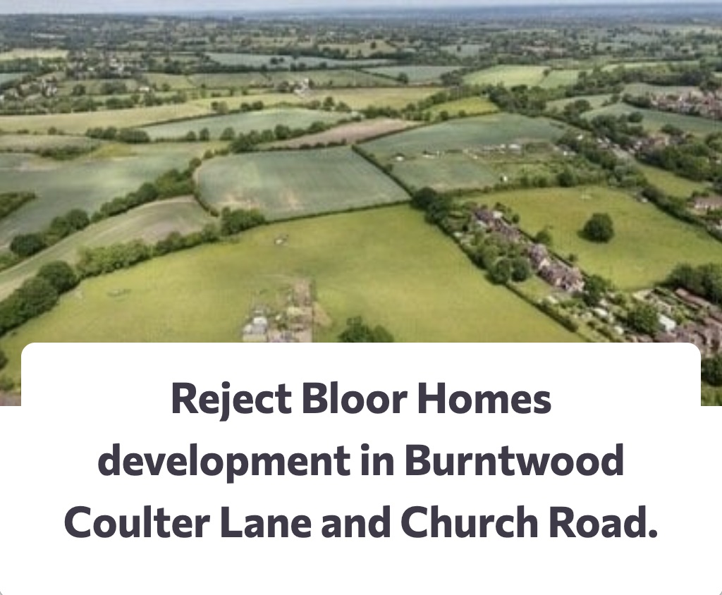 This is the most important thing you can do today to protect our community and local history. We are fighting to Reject the Bloor Homes development proposals for the land at Coulter Lane and Church Road. This development would result in the downgrade of our precious green space, put massive strain on our infrastructure, and … Continue reading 🚨 URGENT CALL TO ACTION: STOP THE BURNTWOOD DEVELOPMENT! 🚨